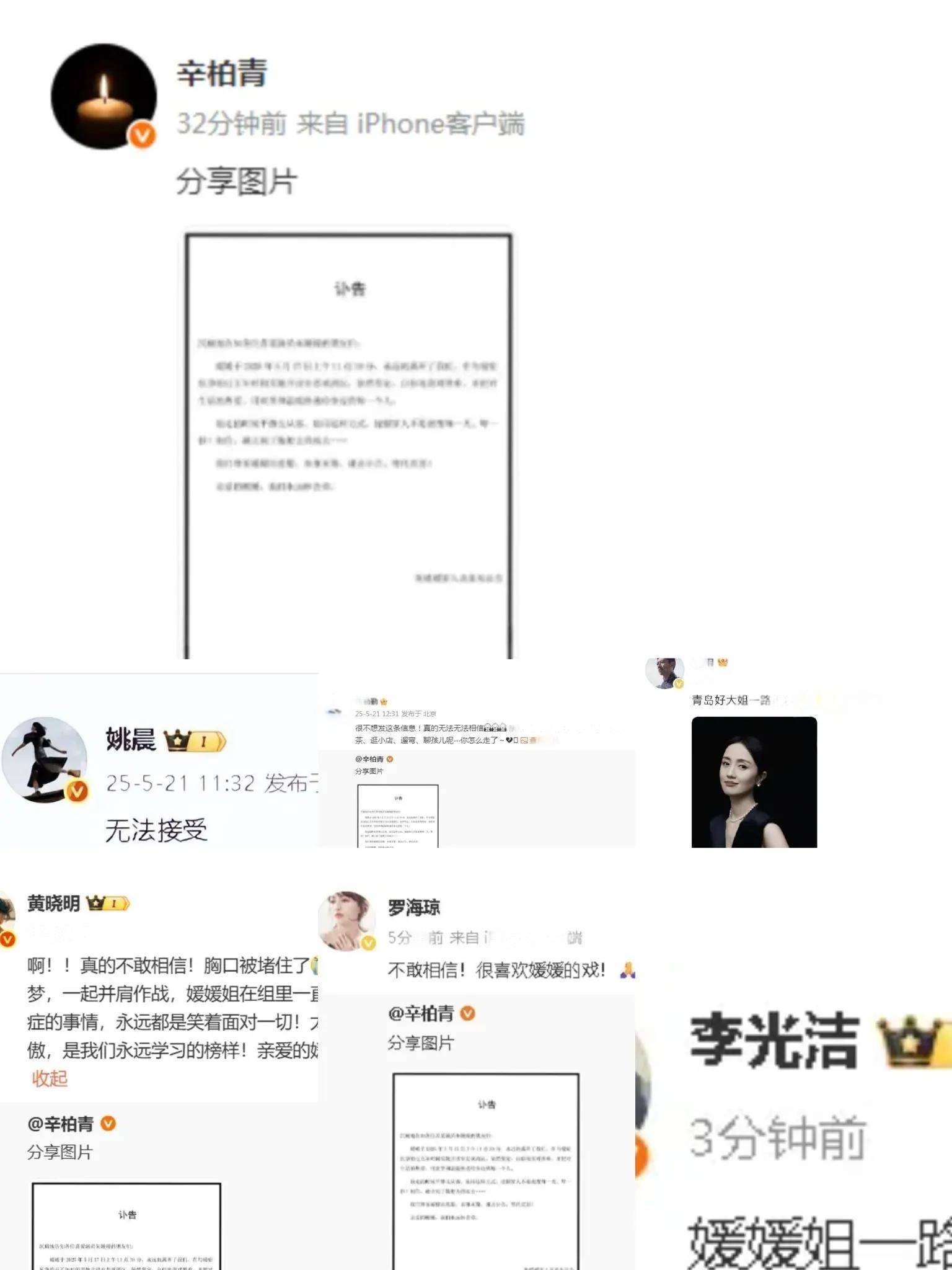 她的离世让半个娱乐圈破防。冯远征一句"柏青节哀"道尽老友心痛;姚晨发文回忆两人约定的红烧肉和未完成的演戏目标,字字泣血;马伊琍不愿相信,喊话"朱老师出来演戏";梁冠华哽咽回忆《贫嘴张大民》的夫妻戏份,音容笑貌历历在目。荧幕外的朱媛媛,是青岛大院里长大的孝顺女儿,是嫁给初恋辛柏青的长情妻子。夫妻俩携手走过抗癌路,辛柏青在讣告中透露,她始终积极坚定,把最好的一面留给身边人。